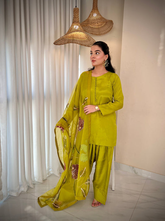 Our Hand-Painted & Embroidered Dupatta Collection offers unique designs on luxurious fabrics, ideal for special occasions..